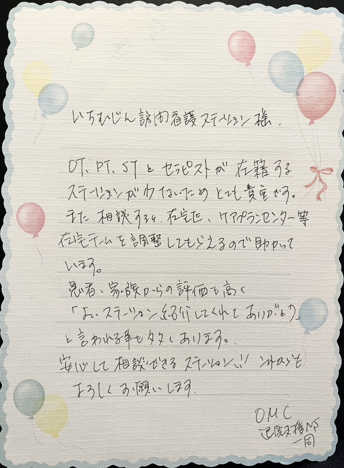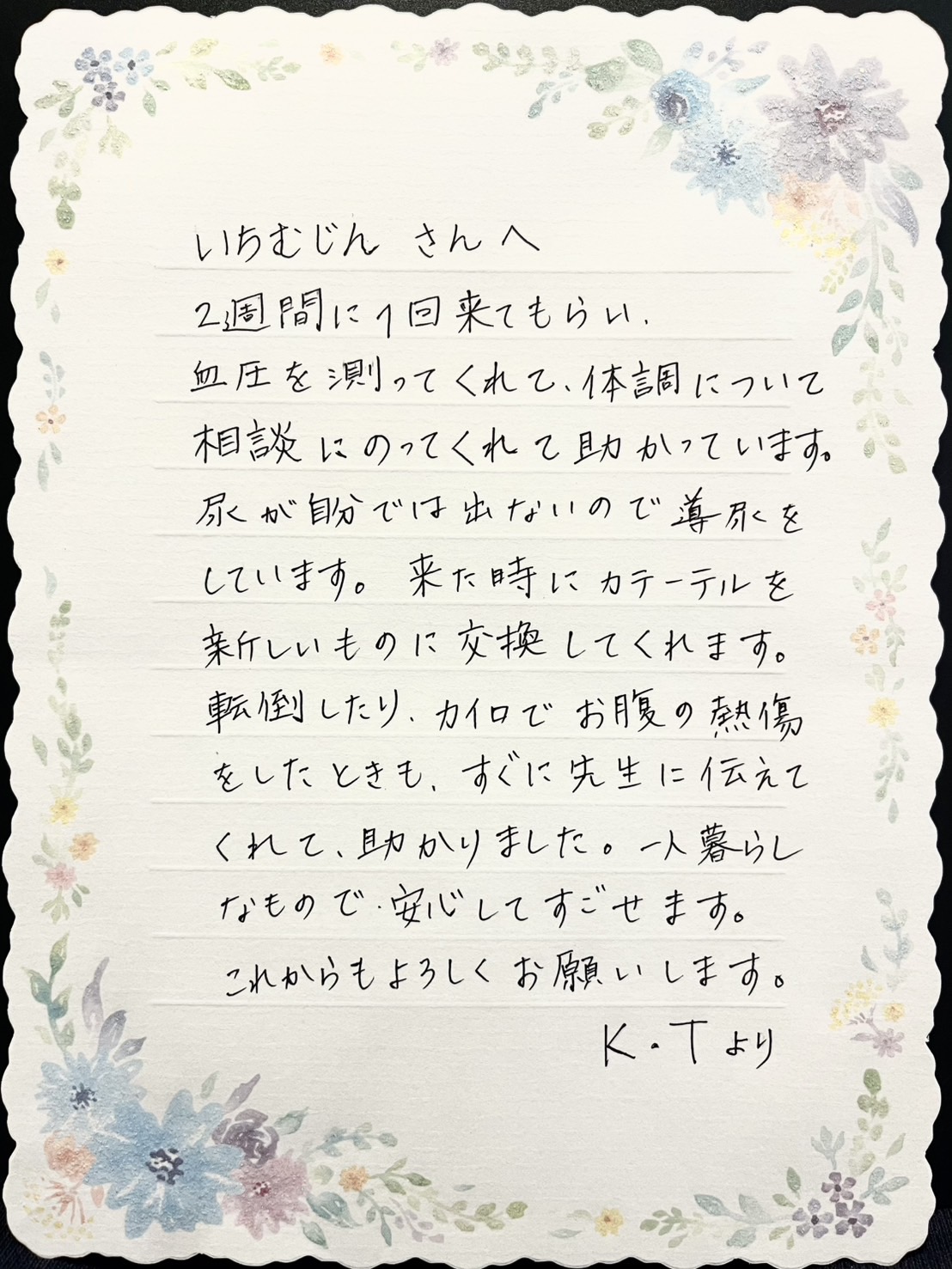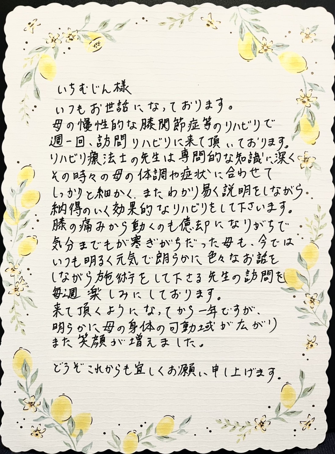 いちむじん訪問看護ステーションのサービスをご利用の皆様よりいただいた声、お手紙をご紹介します。